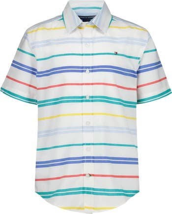 A versatile staple for school and beyond, this smart short-sleeve button-up shirt is cut from a rainbow striped cotton-blend and finished with the brand's signature flag embroidery at the chest.