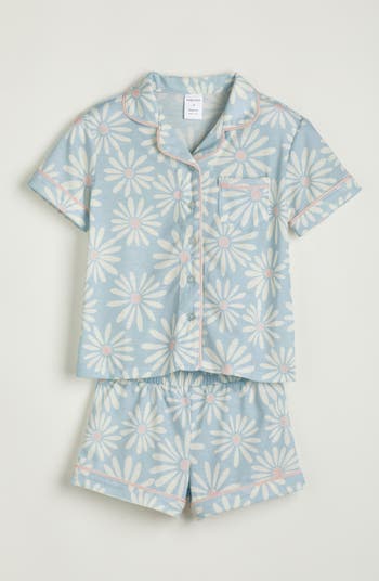 These silky, loose-fitting short pajamas keep your young one comfortable during dreamtime and feature crisp piping and sporty cuffs.