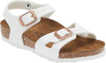 A quarter-strap design defines a classic sandal built on the legendary Birkenstock footbed for time-tested comfort and fun-to-wear style. Every Birkenstock features a deep heel cup that promotes correct weight distribution and foot alignment. The brand's signature contoured footbed supports kid's growing feet with a roomy toe box that allows toes to stretch out and arch support for a steady foundation that encourages good posture.