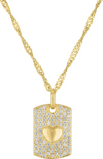 Add sparkle to their look with this gleaming necklace anchored by a dog tag pendant adorned in cubic zirconia pavé and centered with a heart.