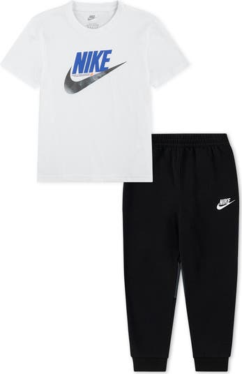 Give your kid sporty style with this Swoosh logo printed T-shirt and joggers set constructed from a comfy cotton blend.