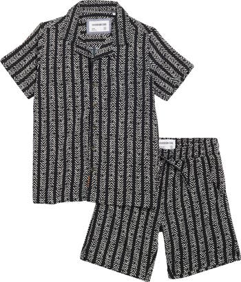 Update their warm-weather attire with this matching set of a camp shirt and shorts that exude resort-ready vibes.