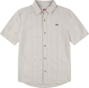 Textured stripes and signature brand embroidery make this button-up shirt a must-have for your trendsetter.