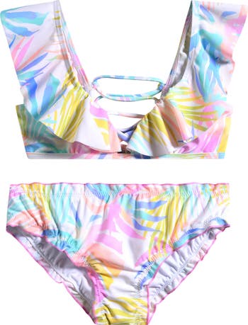 Your beach-loving kiddo will love to swim and explore the ocean in this matching bikini edged in frilly ruffles.