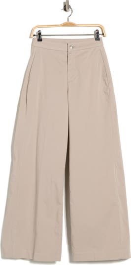 Stretch-kissed cotton lends a luxurious drape to these trouser-inspired pants made with a superhigh waist and full-length wide legs.