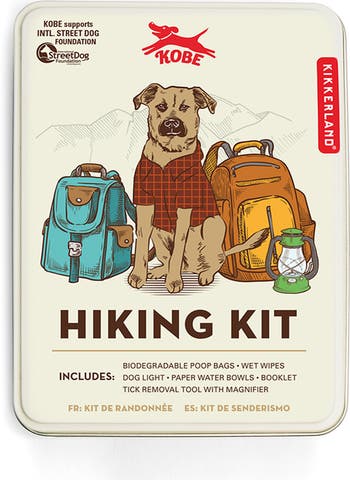 Everything you need for a great hike with your comes in this dandy kit complete with poop bags, wet wipes, water bowls, a whistle, reflector, tick-removal tool and a travel booklet.