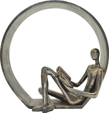 This three-dimensional resin sculpture of a reader in a circle brings literary art to life.
