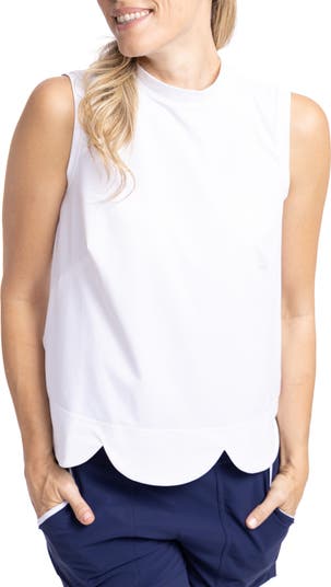 Level up your look on the course or pickleball court in this charming sports tank top crafted with a scalloped hem from stretchy, moisture-wicking fabric.
