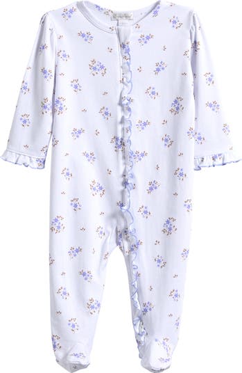 Supersoft pima cotton ensures baby will be comfortable in this frilly footie secured with a front zip closure for quick changes.