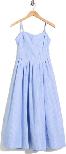 This fit-and-flare dress patterned in slim pinstripes is a perfect combination of sweet and sophisticated.