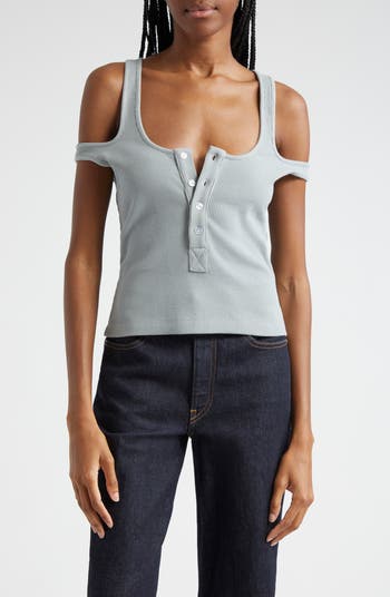 Gender Inclusive Two-Way Cold Shoulder Waffle Tank
