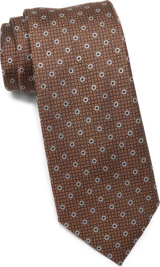 Add a pop of textural interest to your dapper look with this satin tie featuring a neat square-jacquard pattern.