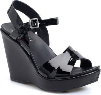 Italian calfskin leather is shaped into a lofty ankle-strap sandal that provides unparalleled support and cushioning. A tall wedge and platform further the style's retro sophistication.