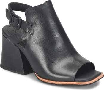 A buckled slingback strap and smooth leather lend trend-savvy appeal to a sandal lifted by a flared block heel.