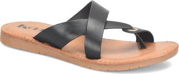 Crisscrossing vamp straps lend sophisticated style to this minimal slide sandal with contoured support and flexibility.