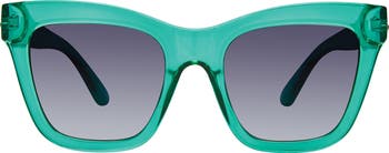Chunky cat-eye frames bring cool appeal to modern sunglasses fitted with full-coverage, UV protective lenses.