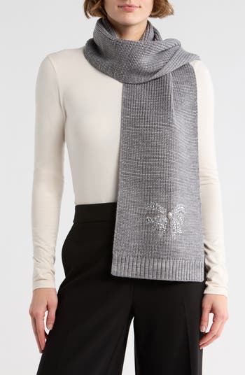 A signature eagle head and crystal embellishments enhance the classic cold-weather vibe of a cozy scarf that adds a perfect amount of warmth to your look.