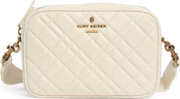 A mini eagle's head puts a signature stamp on this quilted leather crossbody bag featuring a secure top-zip closure and removable, adjustable webbed strap.