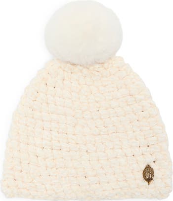 Chunky chenille knit topped with a faux-fur pompom enhances the classic cold-weather vibe of this cozy beanie that adds a perfect amount of warmth to your look.