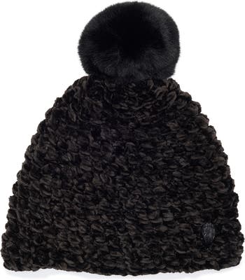 Chunky chenille knit topped with a faux-fur pompom enhances the classic cold-weather vibe of this cozy beanie that adds a perfect amount of warmth to your look.