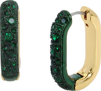 Shimmering faceted crystals add rich sparkle to these oval hoop earrings that are finished in a warm golden hue.