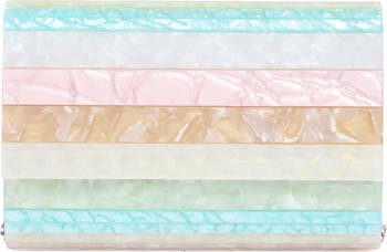 A swirling effect details the pastel stripes over this acrylic envelope clutch, while a drop-in chain strap leaves you hands-free for drinks and mingling.