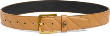 The brand's signature eagle-head logo highlights a square buckle that's a blinged-out to complement the quilted leather of this belt.