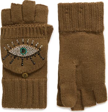 Evil Eye Convertible Crystal Embellished Mittens