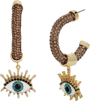Crystals give a signature glint to these eye-anchored hoop earrings.