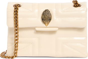 A scaled down version of the original, this Union Jack stitched leather bag features a signature eagle's head on the flap closure and gleaming chain shoulder straps for luxe style.