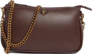 Signature eagle's-head hardware elevates this compact leather bag fashioned with removable shoulder and crossbody chain straps.