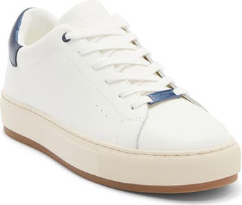 A sleek leather upper and streamlined silhouette distinguish a low-profile sneaker grounded by a cushioned footbed and sporty cupsole.