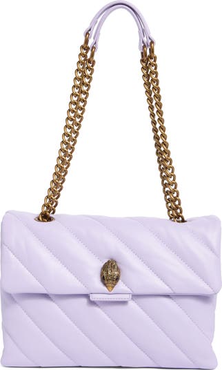 Diagonal quilted stripes distinguish a structured shoulder bag rendered in supple leather and finished with a signature crystal-embellished eagle head. A pull-through chain strap that can be worn doubled or extended adds styling versatility.