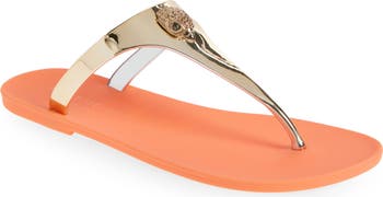 Sparkling eagle hardware adds a signature flourish to a sophisticated sandal set on a color-pop sole.