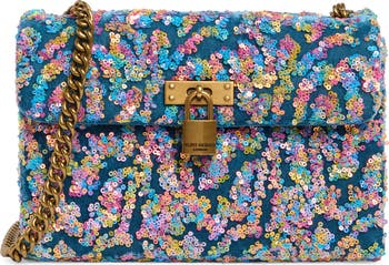 Sparkling sequins bring glamour to this signature-lock shoulder bag finished with a pull-through chain strap.