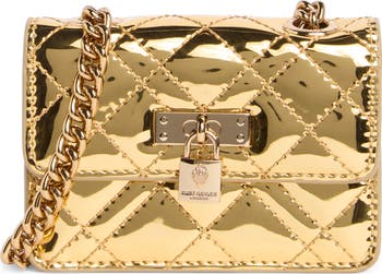 Bring a bold finish to your look with this diamond-quilted crossbody fashioned with a burnished chain strap and signature logo-enrgaved lock hardware.