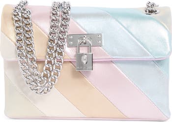 Pastel-hued stripes and signature eagle-head hardware define a shoulder bag suspended from a chain that can be worn doubled up on your shoulder or long and across your body for versatile appeal.
