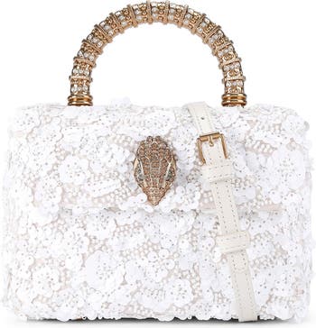 Lustrous sequins and crystals illuminate the exterior and hardware on a glam bag shaped in a compact profile and fitted with an optional crossbody strap for hands-free wear.