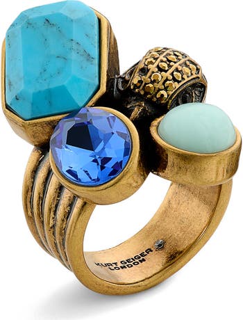 Bring eye-catching color to your jewelry game with this iconic eagle head cocktail ring featuring a mix of turquoise and crystals.