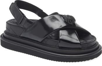Crystal-embellished eagle-head hardware brings house-signature sparkle to this crossband-style sandal featuring a bold monochromatic design.
