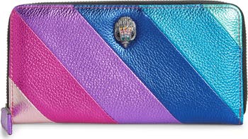 Colorful stripes of metallic leather dazzle a roomy, accordion wallet perfect for keeping cards, cash and other financial essentials stylishly organized.