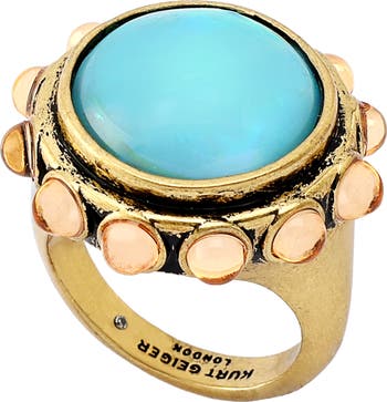 Resin stones bring a splash of color to a cocktail ring that lends vintage inspiration to your elevated looks.