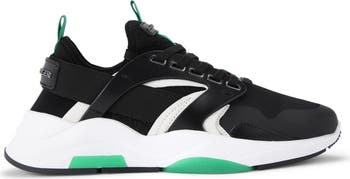 A caged design lends an extrasporty look to this casual sneaker set on a robust, wavy sole and highlighted with color-pop accents.