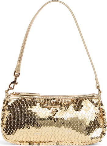 Brassy logo hardware and a house-signature eagle head gleam at the front of this Y2K-inspired sequined bag topped with a convertible wristlet strap.