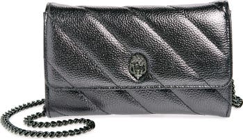 Diagonal quilting and a signature eagle head distinguish this streamlined leather wallet furnished with an array of pockets and a equipped with a removable chain strap for hands-free styling.