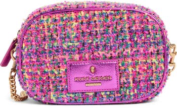 Tweed fabrication gives an understated update to a camera-styled bag that comes with an optional crossbody strap to mix up your carry style per outfit.