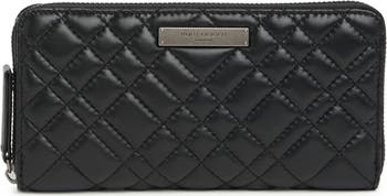 Signature geometric quilt stitching styles a chic wallet keeping your cashe of coins and cards organized.