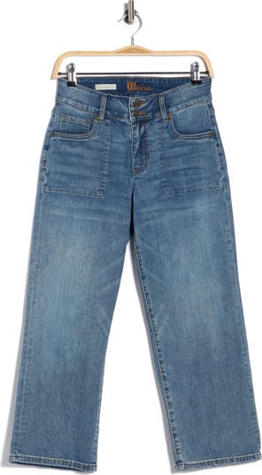 Roomy pockets enhance the utility of perfectly faded jeans cut in a cropped wide-leg silhouette from comfortable stretch denim.