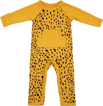Soft and silky with temperature-regulating properties, this long-sleeve romper is made in convenient button snaps for easy changes. A front kangaroo pocket adds adorable functional style.
