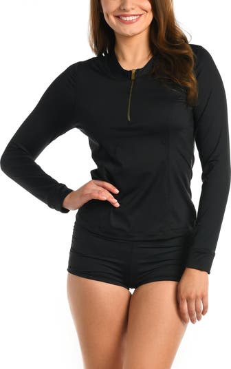Ready for a day at the beach, this half-zip rashguard protects you from the harsher elements of the sun and sea.